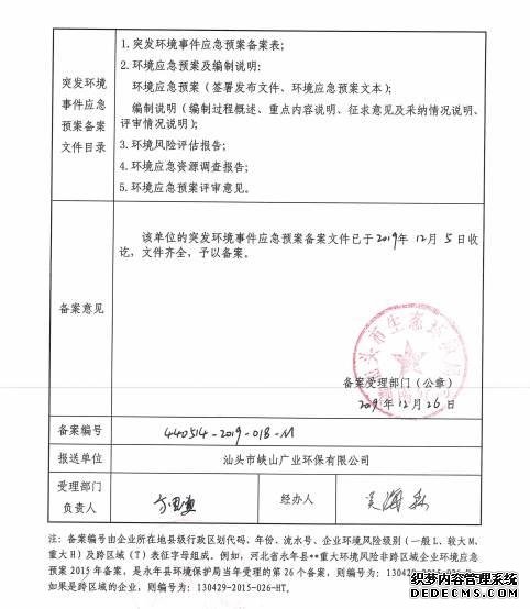 汕頭市峽山廣業(yè)環(huán)保有限公司根據(jù)自身實際情況制定了突發(fā)環(huán)境事件應急預案,并成立了環(huán)境污染突發(fā)事件應急處理領導小組,根據(jù)制定的應急預案定期開展應急演習,以確保做到對突發(fā)環(huán)境事件反應快速,救援及時,應對措施得力有效,保障社會穩(wěn)定、人民生命財產(chǎn)和生態(tài)環(huán)境安全,保證企業(yè)安全生產(chǎn)和經(jīng)濟效益的提高。